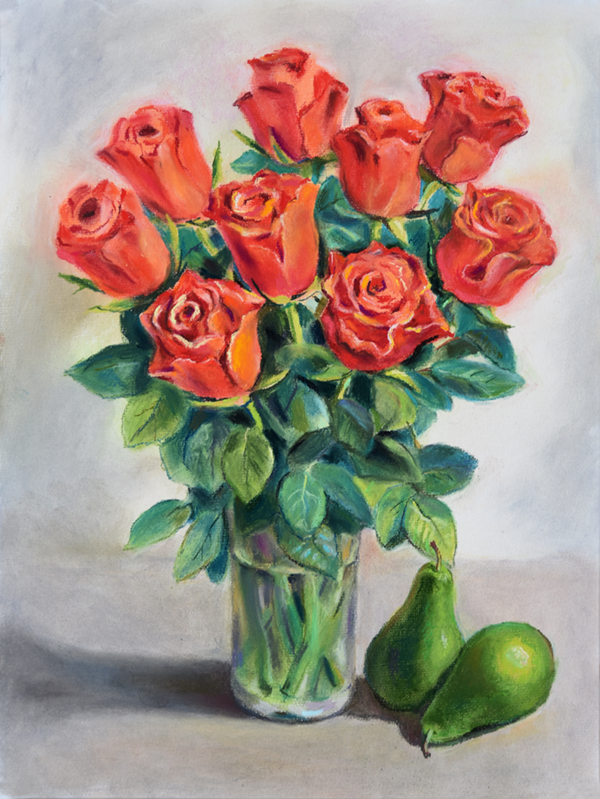 Drawings with pastel crayons. I like this drawing technique. Pastel crayons are easy to use when going to studies. Pastel drawings do not get dirty and do not fade over time like oil paints do.